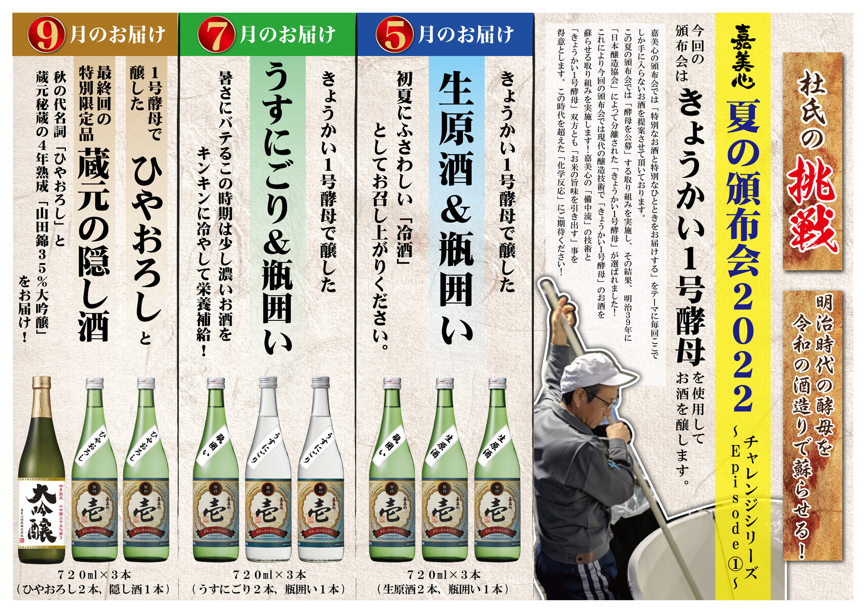 嘉美心シリーズの新酒を醸造する際に、